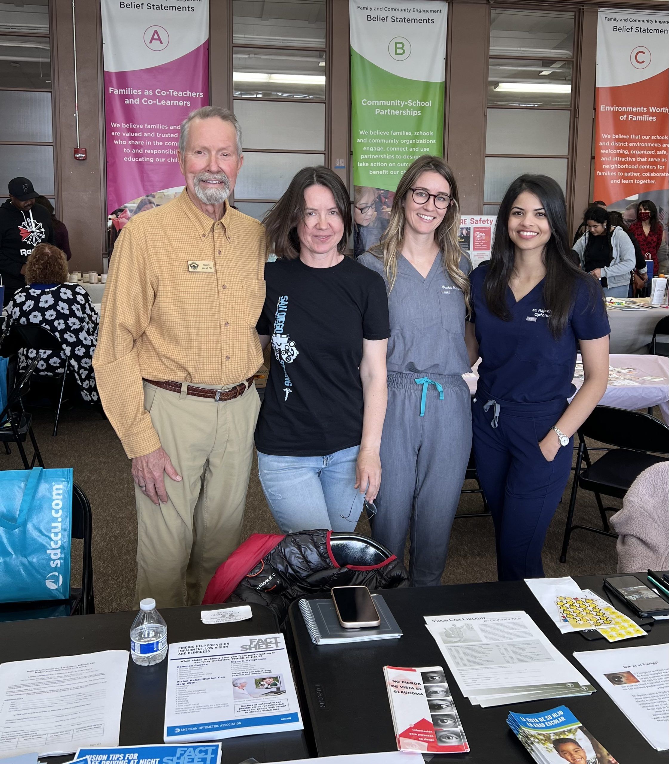 Fremont Elementary for the San Diego Unified School District hosted a health fair in Old Town with students and parents attending Drs. Simona Grosu, Sloan Rajadhyksha, Rachel Niskanen and Bob Meisel were volunteers at the society table and answered questions, demonstrated stereopsis and distributed many pamphlets on various eyecare topics